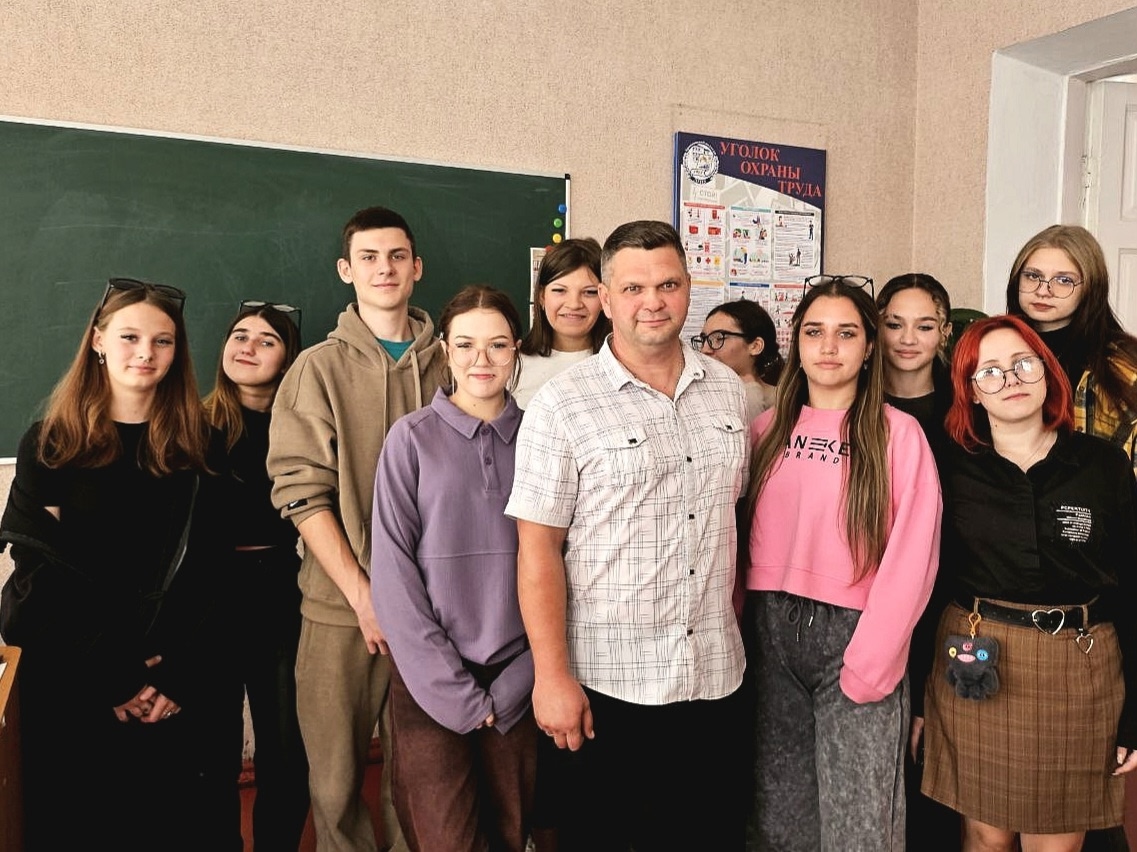 В Брянковском колледже ЛГПУ состоялась встреча студентов с педагогом по охране труда и ветераном боевых действий Валентином Матченко. Беседа была посвящена вопросам патриотизма, гражданского долга и личной ответственности каждого гражданина за будущее своей страны.