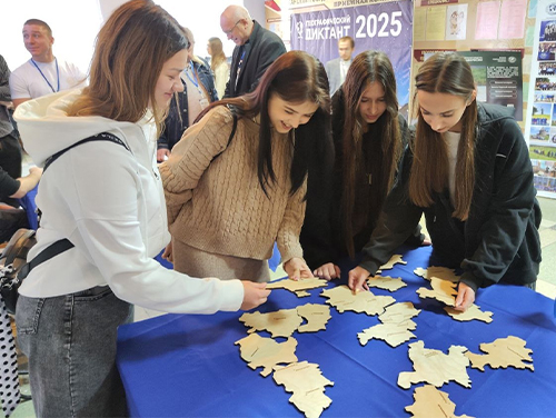В рамках мероприятия студенты участвовали в выставке-викторине «30 вопросов по географии России», а затем приняли участие в самом диктанте.